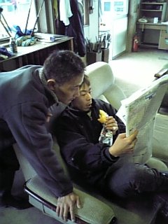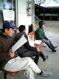 んで、名古屋競馬中だから、攻め馬の合間に新聞みて研究する人もいたり。外にはミツアキタービンがいたので